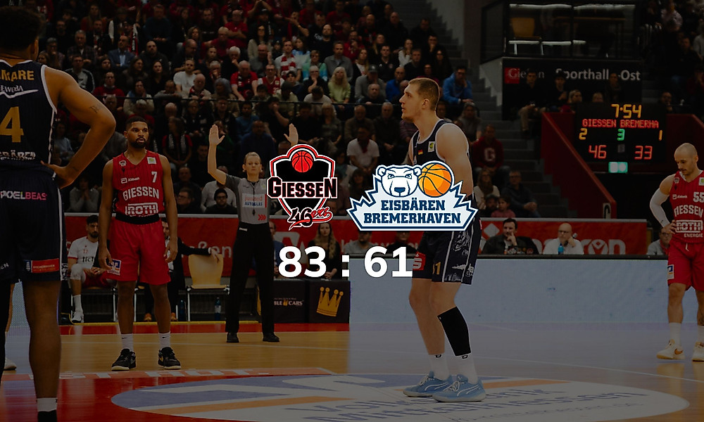 Mit einem angeschlagenen Kader konnten die Eisbären Bremerhaven am Samstagabend nicht ihre Bestleistung abrufen und mussten sich in der Osthalle deutlich den Gießen 46ers (61:83) geschlagen geben. Vor rund 2.300 lautstarken Zuschauern zeigten die Gastgeber eine konzentrierte Vorstellung, während die Eisbären ihre bisher schwächste Leistung der Saison ablieferten. Trotz der Niederlage war es erst die zweite Pleite der laufenden Saison. Topscorer der Eisbären war Elijah Miller mit 23 Punkten.