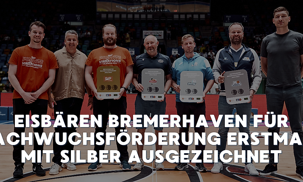 An Gold nur ganz knapp vorbeigeschrammt, haben die Eisbären Bremerhaven bei der Bewertung ihrer Arbeit in der Jugend- und Nachwuchsförderung dennoch allen Grund zur Freude: Im Rahmen der Zertifizierung bundesweiter Basketball-Nachwuchsstandorte durch die easyCredit BBL, die BARMER 2. Basketball Bundesliga sowie den Deutschen Basketball Ausbildungsfond e.V. erhielt die Jugendarbeit der Eisbären Bremerhaven erstmals die Auszeichnung „Silber“ und ist damit in seiner positiven Entwicklung als Nachwuchsstandort in Deutschland bestätigt worden.